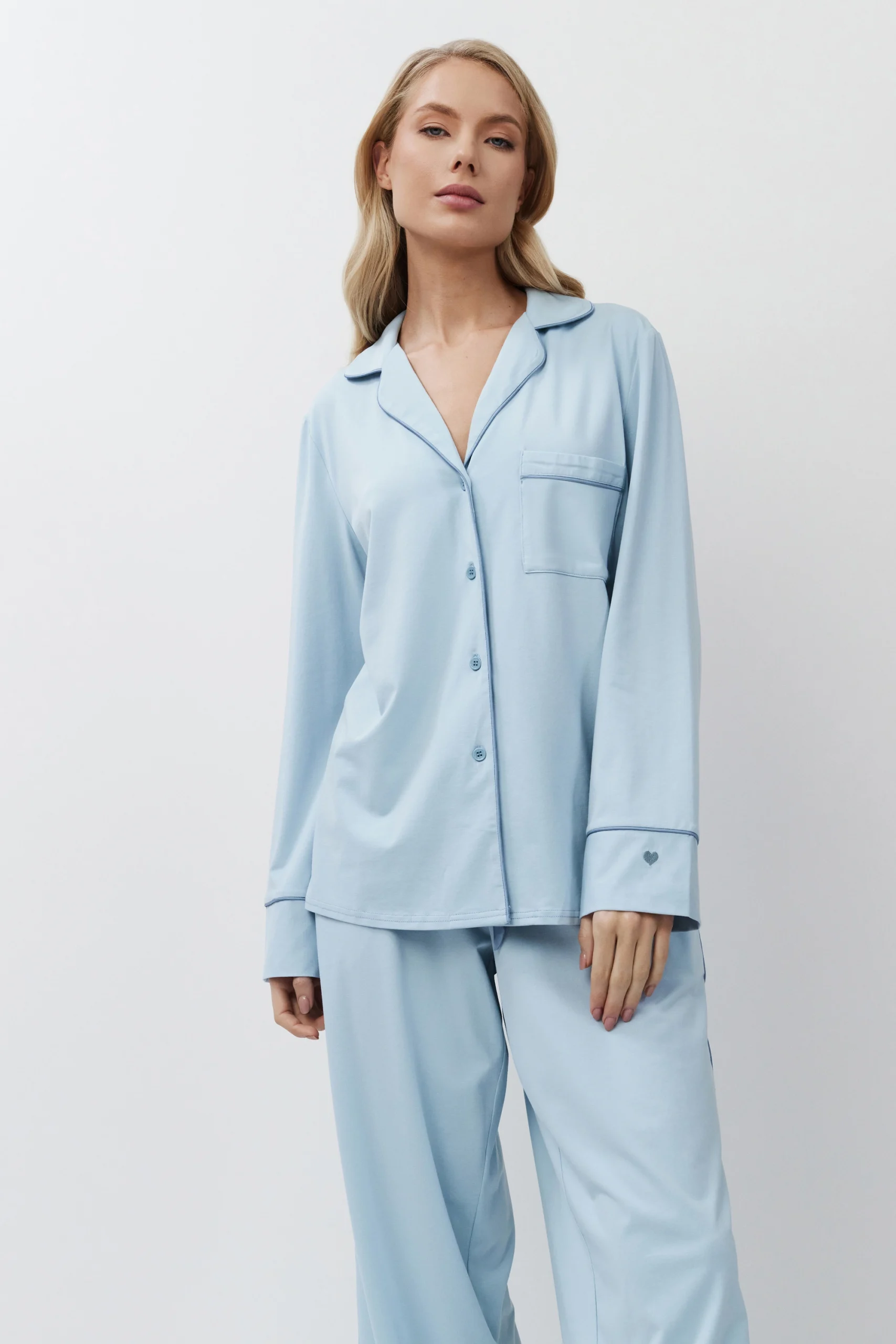 Цей піжамний комплект виготовлений із високоякісного блискучого бавовняного попліну — легкого, дихаючого та приємного до тіла.